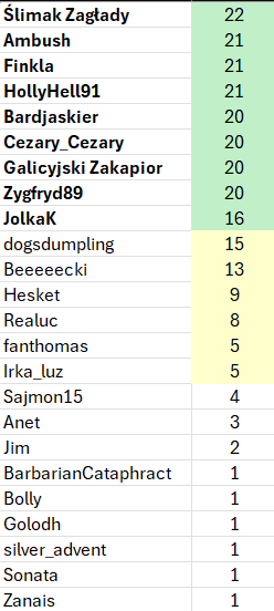 Musimy też poprawić jeszcze jedną sprawę: bardzo wyraźnie, wprost, poprosiłem was o to żebyście podawali dokładne nicki użytkowników, na których głosujecie. Nawet pogrubiłem to, żeby nikomu nie umknęła wiadomość! Tymczasem oczywiście mieliśmy masę problemów z zapisem. Część z nich mogła być kwestią literówek/błędów (kto jest mi w stanie powiedzieć ile “e” ma w nicku beeeecki bez sprawdzania? XD), ale niektórzy wyraźnie robili sobie żarty zabawą z zapisem. Ja tu naprawdę nie chcę zrzędzić, ale nie po to proszę was o poprawny zapis, żeby wam życie komplikować, tylko po to żeby proces sprawdzania przebiegał bez problemów. Gdyby wszystkie nicki były zapisane jak trzeba, przelecielibyśmy szybko głosy automatycznie, przy użyciu skryptu. Niestety nie mogliśmy tego zrobić i musieliśmy grzebać w głosach ręcznie, sprawdzając się na wzajem – zajmuje to nam więcej czasu, dodaje roboty, denerwujemy się niepotrzebnie, na co to komu. Tak więc chciałbym teraz zapowiedzieć wprost, że we wszystkich kolejnych wyborach głosy oddane na niepoprawnie zapisany nick będą nieważne i tyle.